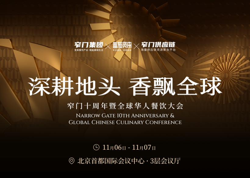作為全球華人餐飲界年度盛典,“深耕地頭·香飄全球”窄門十周年暨全球華人餐飲大會(huì)將于11月6-7日盛大召開。本次大會(huì)匯聚全球500+ 餐飲品牌掌舵者、供應(yīng)鏈領(lǐng)軍企業(yè)及行業(yè)專家,圍繞 “中餐全球化”“餐飲品牌連鎖發(fā)展”等核心議題,深度探討食材溯源、標(biāo)準(zhǔn)化生產(chǎn)、全球化布局等前沿趨勢。